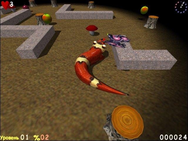 ![]() В этой трехмерной игре вы сможете принять участие в важном научном эксперименте, в ходе которого необходимо восстановить популяцию редких змей, которые почти исчезли с лица земли. Дело это хлопотное: на каждом из 80 уровней вам нужно вырастить одного змея. Для этого его нужно кормить грибами, яблоками и другими яствами, которые разбросаны по уровню. Каждый съеденный фрукт немного увеличивает длину змея, и управлять им становится все сложнее. Когда змей достигнет нужной длины (100% и более), то вертолет принесет ключ, который также нужно скормить вашему питомцу, после чего откроется выход с уровня. И не забудьте, что время прохождения уровней ограничено, и вам обязательно нужно вырастить змея до наступления темноты! В противном случае несчастное животное погибнет, а уровень придется переигрывать с самого начала. Ситуация усугубляется еще и тем, что кроме еды на игровом поле полно посторонних предметов. Будьте внимательны, и не давайте змею есть камни, а также избегайте столкновений со стенками и с его собственным хвостом - в этом случае велика вероятность того, что он